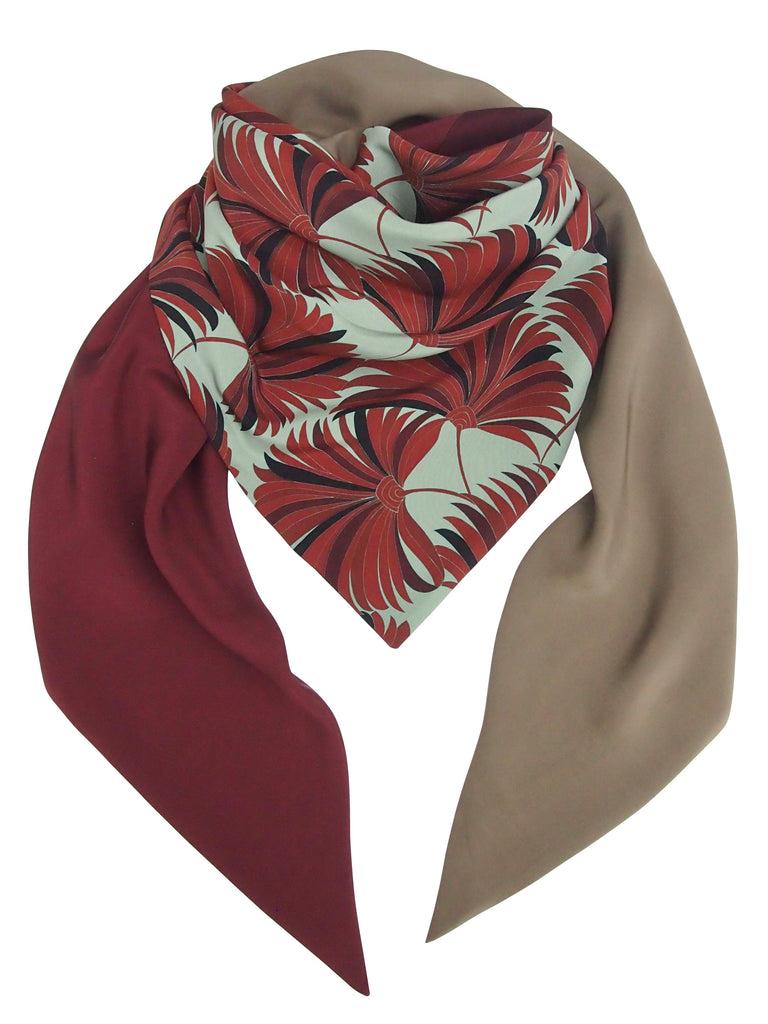 Seidentuch in warmen Rottönen und khaki