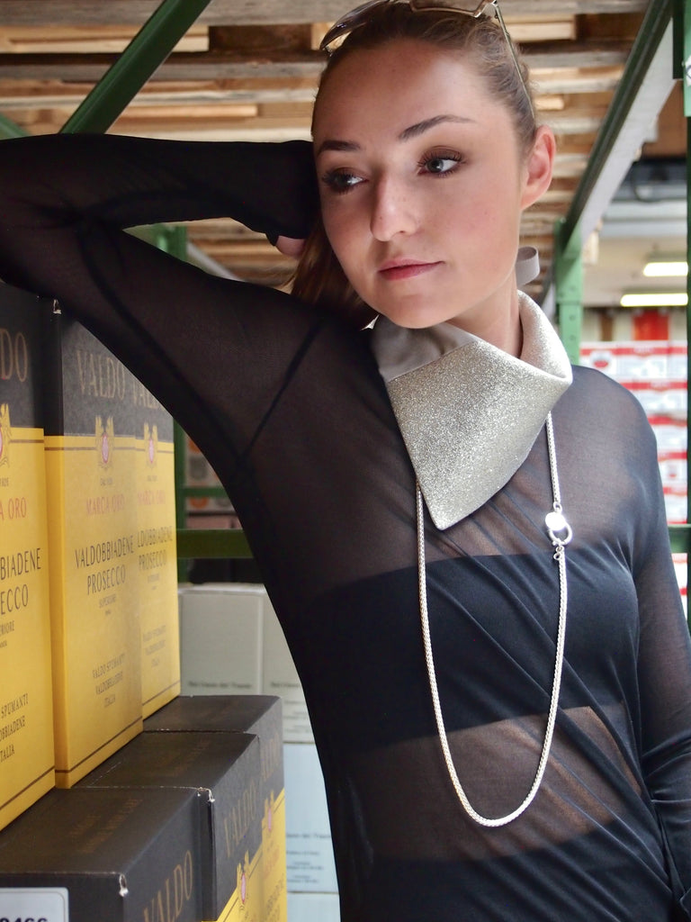 Kleines Halstuch aus Seide und Lurex in silber